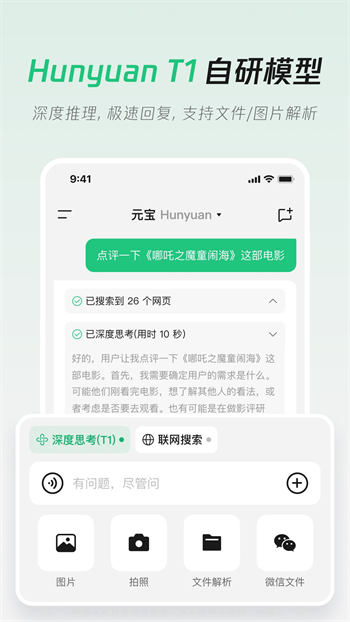 腾讯元宝免费下载安装是腾讯公司基于自研混元大模型开发的AI智能助手软件,集AI搜索、文档解析、内容创作及生活服务于一体,覆盖办公、学习、创作、健康管理等全场景。依托万亿级参数规模的混元大模型,腾讯元宝免费下载安装具备强大的中文理解、逻辑推理和跨模态生成能力,支持对PDF、Word、PPT等23种文件格式的智能解析,以及微信公众号、网页链接等内容的深度总结。其核心功能包含一键生成报告框架、AI代码编写、多语言翻译等效率工具,同时整合口语陪练、旅游规划、健身指导等生活服务,用户日均处理效率提升60%以上。作为腾讯生态的重要入口,腾讯元宝免费下载安装深度打通微信搜一搜、公众号等内容源,并通过个性化推荐算法实现"千人千面"的智能体验。