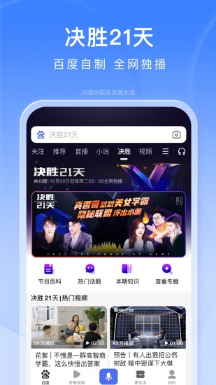 百度app下载安装官方免费版是一款非常好用的手机上网浏览器软件。百度app下载安装官方免费版功能丰富好用,使用方便,全球海量用户都在使用这款软件上网搜索。软件界面整洁清晰,排版工整,用户可以在软件中非常轻松的看见所有的功能,使用更加方便。用户每一次打开软件都可以看到最新、最热的国家新闻实事,还有众多视频可以观看,让你不会错过每一个精彩、重要的新闻内容,紧跟实事。无论你想要搜索什么内容,包括问题、教程、小说、明星等,只要是你可以想到的,就可以在这里搜索找到你需要的答案,非常好用。用户可以在这里直接浏览短视频,还可以自己发布,非常好用。喜欢的小伙伴还在等待什么?快来下载使用吧!