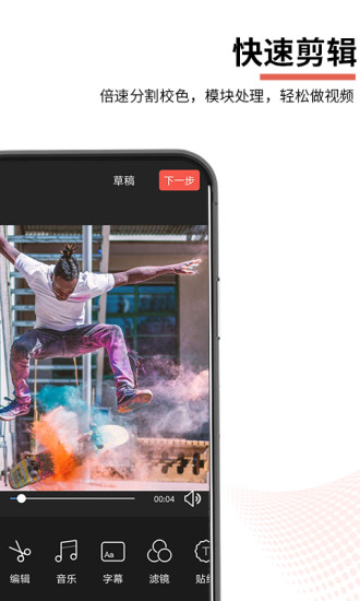 1、提供剪辑、调整倍速、倒放、复制、添加素材、分割素材等多种专业功能;