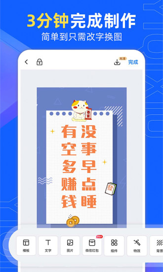 1、自主制作,非常简单的制作界面,可以选择各种元素自主的制作你的海报,还能尊享模板。