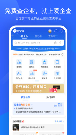 爱企查官方版是一款百度旗下的企业信息垂直搜索引擎展示平台,这里拥有多维度的企业数据等你来查看,支持全国各各地企业,还可以轻松了解个人和企业之间的各种练习,打造了清晰的商业关系图,让用户可以更好的了解更多信息。爱企查官方版拥有专业的数据信息以及便捷的商业功能,提供了非常快速的搜索功能,用户可以输入想要了解企业或者老板都可以轻松搜索,快速获取想要的资讯内容。爱企查官方版适用于多种人群,为更好的满足不同用户的工作需求,丰富的产品数据等你来解析,还可以实时监控企业风险,喜欢的话千万不要错过,感兴趣的用户快来下载体验。