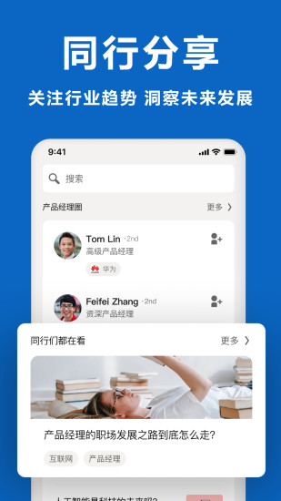 领英职场最新版是一款实名职业认证的职场内容社区软件,这款软件界面简洁,内容丰富,拥有非常丰富的行业相关资讯等你来获取,拥有非常丰富的用户群体,超多公司的内部员工为您提供更多想要的行业热点。领英职场最新版采用实名职业认证的方式,用户不但可以在这里了解更多的内容,还可以在这里打造自己的职业形象,为用户的职业发展提供更好的服务,跳槽找工作更加轻松。领英职场最新版提供了非常丰富的跳槽避坑指南和行业薪资解密,可以轻松了解各个公司的范围,福利,不同之际的薪酬对比等,喜欢的话千万不要错过,感兴趣的用户快来下载体验。