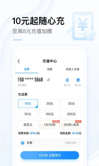 中国移动最新版是一款集销售与服务为一体的手机客户端软件,为了给用户带来最好的掌上移动服务,精心打造了全新的系统,优质的画面。中国移动最新版软件界面简洁,让每个用户到可以快速的寻找到需要的功能,操作简单,容易上手。在任何地方都能做到在手机上缴纳所需的费用。中国移动最新版拥有智能的来电拦截功能防止垃圾信息的骚扰,预防诈骗的事情发生,防患于未然,提供双重保障,使用户用的放心安心。 能通点击软件快速知道目前的话费流量,成为用户的智能助手。还有好用的收藏功能,帮助用户收藏重要的信息。