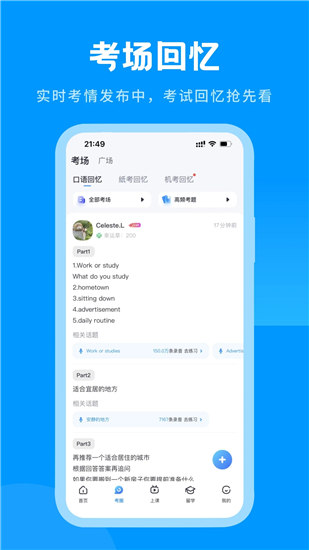 3.高频考题清单,极其方便地查看来自雅思哥多年积累的口语机经高频考题。各个考场,各个考试时间,各个考题出现的频率,一目了然。