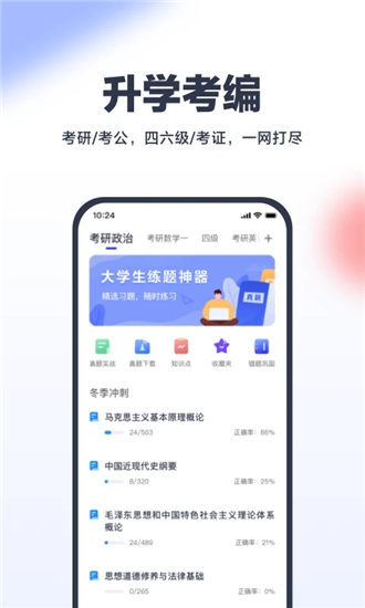 考途官方版是一款专为大学生打造的在线学习软件,为广大大学生提供了更好的学习辅助功能,拥有十分全面的题库等你来获取,每个题目都有详细的解析,还有多种搜题模式等你来选择,帮助用户更加快速解开难题,更好的解决可口问题。考途官方版还提供了非常丰富的精品网课课程等你来选择,各个科目都有提供,超多名师课程等你来选择,带给用户更加优质的在线学习服务,支持在线观看以及下载缓存,随时随地都可以轻松学习。考途官方版还有非常丰富的备考资料等你来获取,各种备考干货轻松获取,喜欢的话千万不要错过,感兴趣的用户快来下载体验。