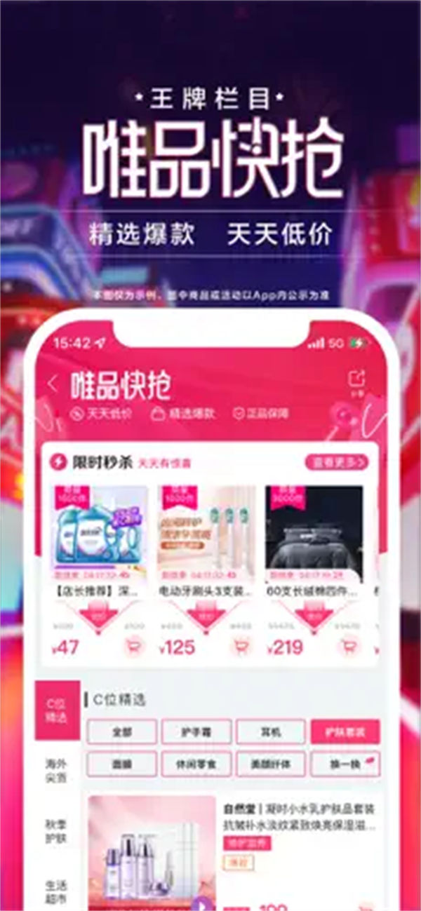 唯品会官方版是一款广大用户经常使用的购物软件,在软件中随时随地可查看到实时的消息,能在其中第一时间了解最新的物流情况,当前销售量最高的商品,官方为了给用户提供最佳的操作体验,设计了许多快捷的购物服务,只要在屏幕上点一点就可快速知悉一切,唯品会官方版和其他购物软件不同的地方在于专卖一些比较有名气的高端品牌,高端品牌都比市面上卖的便宜,有质量保证。唯品会官方版还支持特殊的海外代购服务,帮助用户不出门就可购买到国外的知名品牌。只要在手机设备上按上它,就可随时购物自己喜欢的品牌商品。