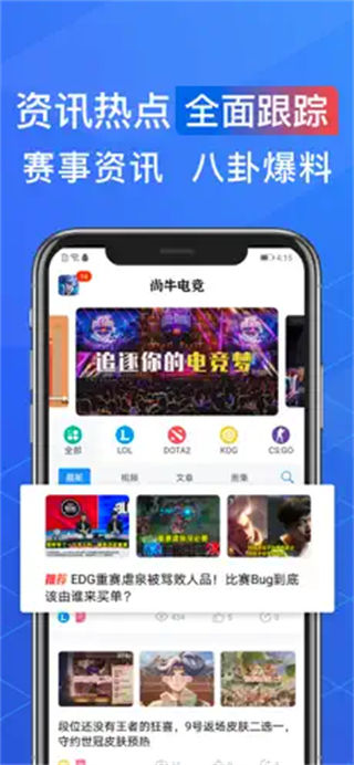 尚牛电竞app最新版是一款专门为电竞游戏爱好者所开发打造的有关于各种网络热门游戏的社区软件,为这些电竞爱好者提供更快,更专业,更加全面的电竞的赛事分析。在这一款尚牛电竞app最新版软件中包含了DOTA2,CS:GO,LOL,炉石传说,王者荣耀等时下网络内最为火热的游戏咨询,选择自己喜爱的游戏,然后加入游戏社区,app将会第一时间告诉你游戏内的八卦以及赛事活动,并且还有各种热门游戏攻略视频都将会实时更新。优秀的社区系统,任你畅所欲言,喜欢与他人分享自己游戏时刻的伙伴们千万不要错过了尚牛电竞app最新版了哟。