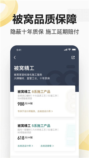 被窝家装最新版是一款非常受欢迎的一站式装修服务平台软件,这款软件界面简洁,拥有海量的装修案例等你来查看,为用户的装修提供更多的参考选择,还可以根据户型来找设计,超多专业设计师为您服务。被窝家装最新版提供了高品质的装修服务,拥有专业的施工团队提供标准化的施工,还提供了远程监管服务,用户可以轻松了解装修进度,还有工程排期表等你来查看,让用户可以更加省心的装修。被窝家装最新版还提供了优质的装修建材商城,超多严选建材家居等你来挑选,超多优惠福利等你来享受,让用户享受一站式的装修服务,喜欢的话千万不要错过,感兴趣的用户快来下载体验。