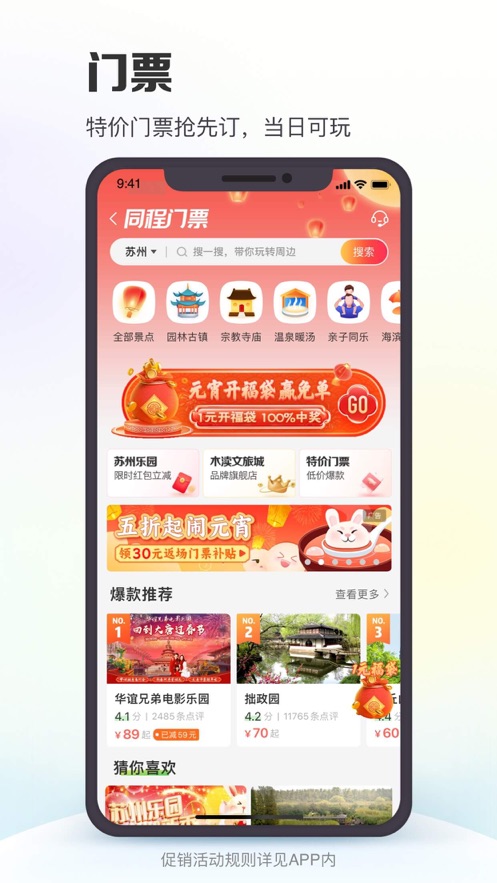 2.本地玩乐:一站式工具--扫码乘公交、打车、顺风车、拼车;本地酒店、景点门票、度假周边游一日游、团购美食;附近商品推荐、达人种草,助你快乐每一程。