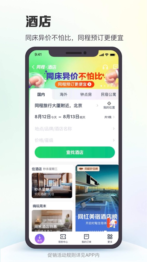 3.旅游:支持国内、国际各目的地旅游、签证产品预订;享特价福利、领大额红包、玩转天天抽奖。
