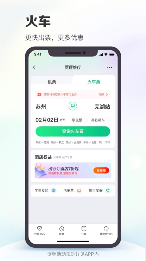 1.新客大礼:同程旅行APP新用户可在同程APP内参与领取新客大礼包,内含国内机票、火车票、国内酒店、景点门票、汽车票、用车打车等新客专享红包,先领券再下单更划算,详情以活动内规则为准。