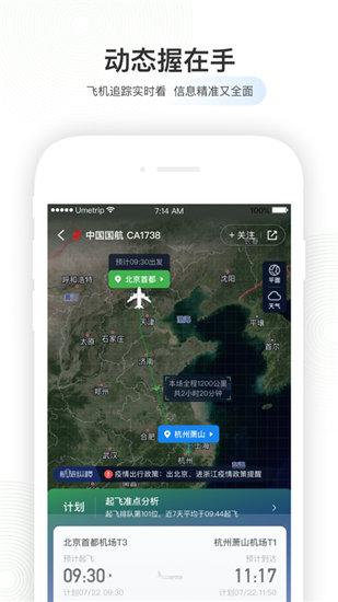 3.全程提示:机票详情.出发时间.机场航站楼.航班动态.登机口信息.目的地天气.机场地图导航.可以采用何种值机方式.机场路线等等