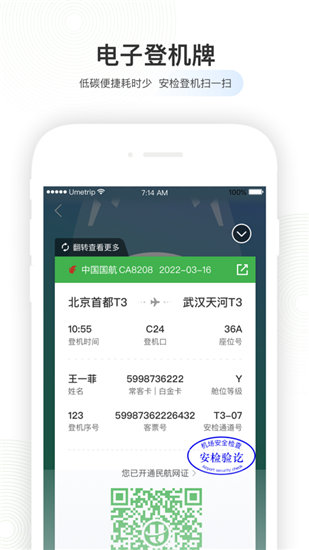 2.电子登机:还在用纸制登机牌吗?试试二维码登机吧,完全的电子登机牌,实现旅游的全程无纸化,更加环保哟