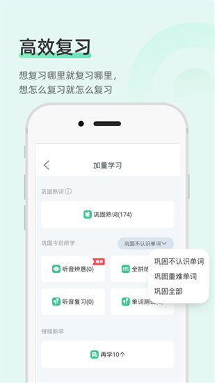 2.按遗忘曲线智能安排每个单词的复习时间和频度。
