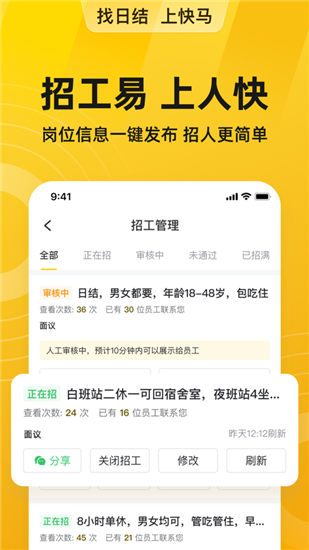 3.【真实靠谱】实名认证,严格筛选拒绝虚假,招工找工都放心;