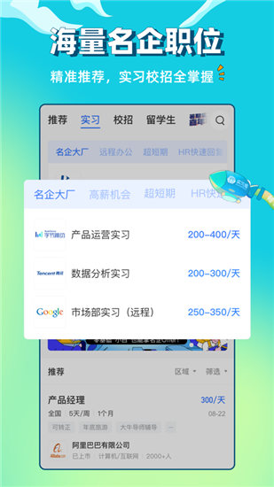 1.暑期实习嘉年华;寒假实习总动员;娱乐/国企/外企专场;秋招/春招/留学生情报站。及时响应学生求职需求,提供针对性帮助,帮你轻松找到实习校招机会。