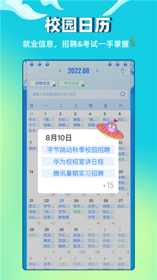 2.这里有海量实习招聘信息;新鲜丰富的校园招聘、网申、空中宣讲、招聘会信息;