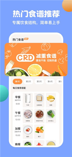 3.科学食谱专属定制:专业的食谱推荐,让您的每一餐不再烦恼,参考减肥食谱和卡路里,让您的燃脂减肥效果更好。