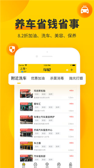 2.用车洗车:一网打尽附近洗车店,到店洗车、水晶打蜡、内饰干洗、贴膜镀晶、杀菌消毒等最低1元等你来!