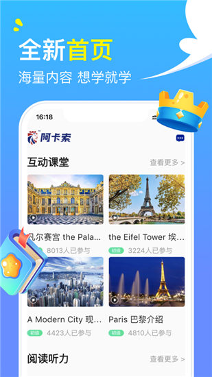阿卡索外教网最新版是一款人气超高的英语在线学习软件,这里汇聚了海量专业的外教,提供了优质的一对一在线口语教学服务,可以满足不同阶段的用户学习,科学的教学体系帮助用户稳步提升,覆盖了生活,工作,旅游等多种场景,带给用户更好的学习服务。阿卡索外教网最新版可以在线预约课程时间,趣味的在线互动课程等你来体验,还有丰富的互动视频等你来体验,丰富的真实场景互动等你来体验。阿卡索外教网最新版还提供了超多学习材料,口语,阅读,听力都可以轻松练习,喜欢的话千万不要错过,感兴趣的用户快来下载体验吧。