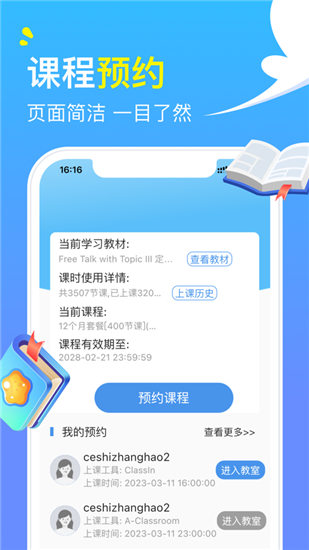2.【随时随地学习】手机、电脑、平板,随时随地想学就学,在线课堂一键约课,好外教轻松带回家,充分利用碎片化时间,学习地道口语。