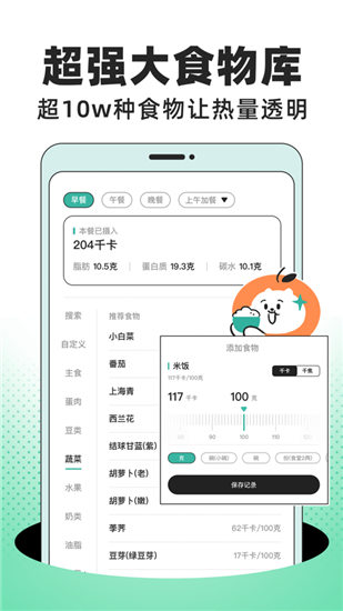 3.海量食物库,营养元素和卡路里清晰可见,吃得明白,瘦身看得见。