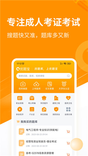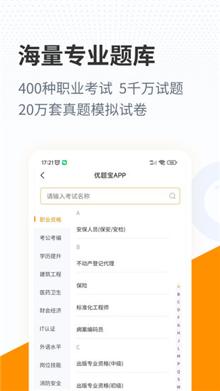 优题宝官方版是一款非常优质的备考学习刷题软件,这款软件提供了多个领域的题库资源,用户可以根据自己的需求来进行选择,超多优质题库等你来练习,可以输入考试名称快速获取模拟试卷,让用户可以随时随地轻松刷题。优题宝官方版提供了非常便捷的搜题功能,支持拍照搜题,语音搜题,文字搜题等功能,超全面的题库资源让用户可以轻松获取答案解析,获得更加优质的刷题服务。优题宝官方版还有各种名师课程等你来获取,直播录像一应俱全,专业讲解各种知识点,备考更加轻松,喜欢的话千万不要错过,感兴趣的用户快来下载体验吧。