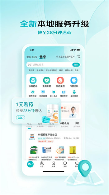 京东健康官方版是一款非常便携欸好用的健康医疗服务软件,这款软件基于京东的各种优势进行打造,针对药品的全产业链和医疗服务流程等全覆盖,用户只需要在线上就能够与知名医师实时沟通交流,根据用户提供的信息判断健康状态,更好的进行健康管理。京东健康官方版软件提供全科专家的在线直播,为用户解答疑问,提供各类科普视频,以三分钟短视频科普轻松让用户了解健康知识。京东健康官方版软件提供健康测评功能,用户可进行专业自我检测试题和咨询服务,节省时间并提前了解自身健康状况,及时就医,不耽误治疗时间,感兴趣的小伙伴们快来下载试试吧。