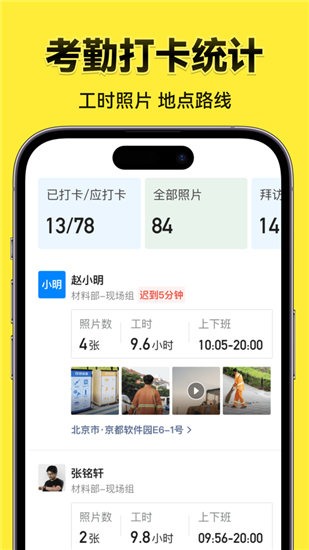 1.拍照自动同步到团队:自动生成考勤报表,提高团队管理效率