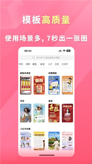 2.选择模板,改字、换图即可完成各类场景图片制作,极易上手,会打字就能用;