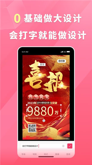 1.只需改字换图,3步7秒,手机一键出海报。无门槛做图做视频,从此设计不求人。