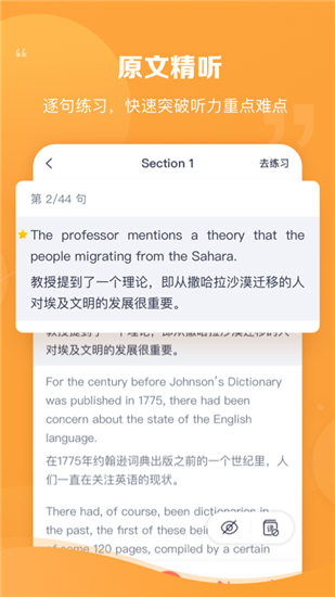 2.听力原文精听精练,中英文翻译、倍速切换,逐词逐句反复精听