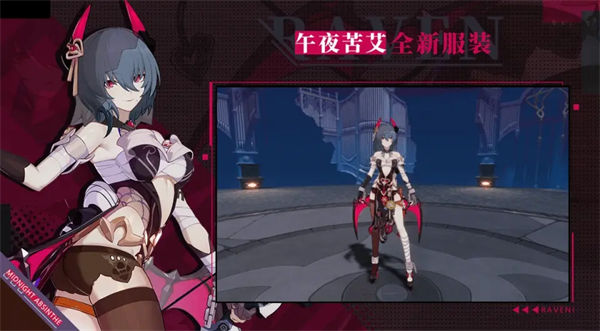 午夜苦艾是崩坏3首个虚数属性的装甲角色,靠着火焰元素辅助能力而出名,自身以远程火焰元素攻击作为主要输出手段,通过各项效果产生的蓄力攻击达成高额的输出来,产生的被动效果可不断的增加,是个大家必入的角色之一。游戏中午夜苦艾是新出的一款皮肤,如果玩家对这款皮肤感兴趣的话,可参加最新的活动玩法来获取,渡鸦的这件新衣服非常好看,获取的方法也不难,基本每个玩家有参加活动的都可获得,可和其他火伤角色搭配出不错的阵容,接下来为大家介绍一下崩坏3渡鸦新皮肤免费获取途径一览。