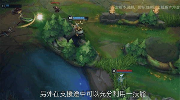 另外在支援途中可以充分利用Q(1)技能获得视野的效果与大招的远距离,避免脸探草丛送人头的尴尬。