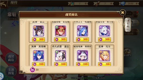 消耗兵魂缔约可以获得英雄以及相关材料,并且召唤30次必定获得一位SSR英雄。每天单抽免费次数有1次,同时每抽取1次就会获得魂契,魂契可在缔约商店兑换你所需要的可选的SSR英雄,不同的SSR英雄所需的魂契数量不同。