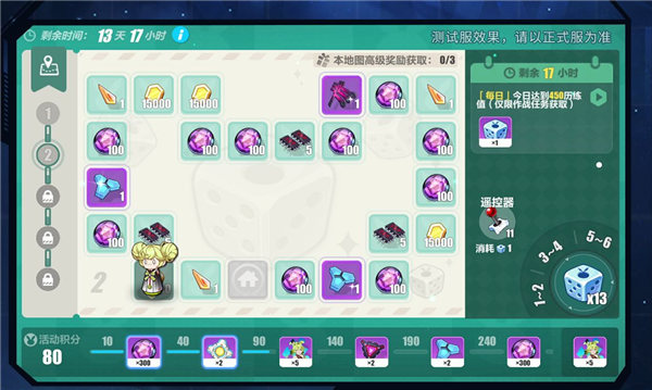 舰长可通过完成面板任务,获取「神奇骰子」与「遥控器」,并以此控制爱酱棋子向前行进。