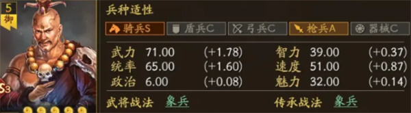 武将本身没什么亮点,主要是蛮族配件。但却是唯一一个限定兵种武将,重要性不言而喻。(有典藏)