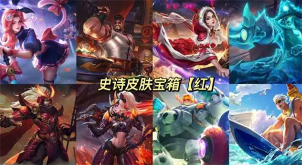 玩家可以选择的主要是三种,分别是史诗皮肤宝箱(红)、史诗皮肤宝箱(蓝)以及3张积分夺宝券,而史诗皮肤宝箱的皮肤则是随机的,但是不会出现已有的重复皮肤,那么选择就变得比较重要了。