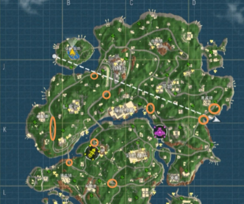 我一般都是跳酒桶山,大概在红线的起点有一辆车,坐上那辆车然后按图中红色路线走,如果酒桶山有人对自己实力没信心的话可以跳到蓝绿线的起点那片野区,那片野区有人的话就跳没人的野区。