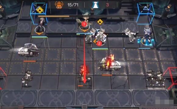 如下图所示位置部署先锋(向左),左边部署远卫。主要为了解决路这边的四个敌人。