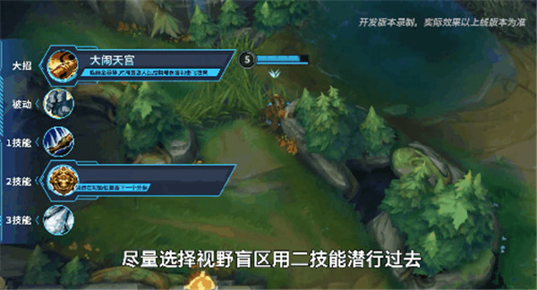随着之前W(2)技能可穿墙机制的改动,孙悟空也逐渐活跃在打野位置。前期尽量多刷野,保证自己能够快速升到五级,利用大招进行Gank。