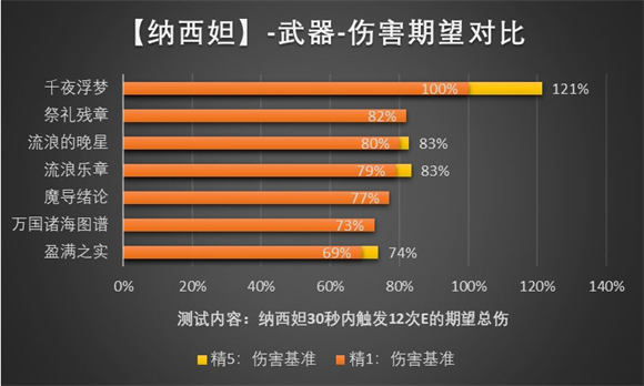 很明显,千夜浮梦吊-打其他武器,高出20%左右的伤害。同时千夜浮梦的精炼收益也很高。