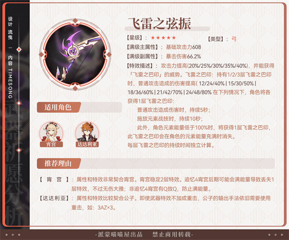 (强度偏高,作为宵宫专武,精1飞雷仅比精5弓藏高10%左右,有点丢人)