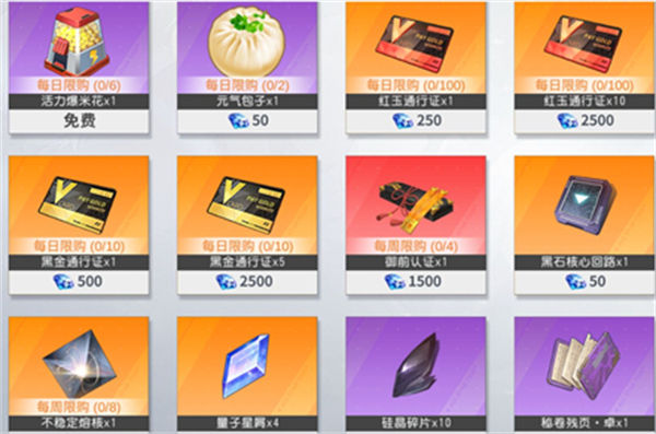 该商店的道具每日会进行刷新,刷新购买次数,夺宝券就不用多说了,肯定是每次必买的东西,其中价值最高的是核心回路、不稳定熔核以及量子星屑,这几个道具的获取难度较大,必定成为首选,其次就是爆米花体力了。