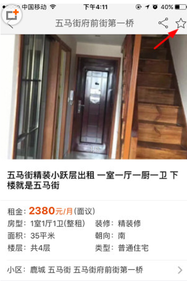 3、在你房源详细介绍页面,点击右上角的“星星”标志就收藏成功了。