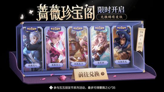 珍宝阁开放期间,参加五五朋友节系列活动最多可获得蔷薇之心*35。