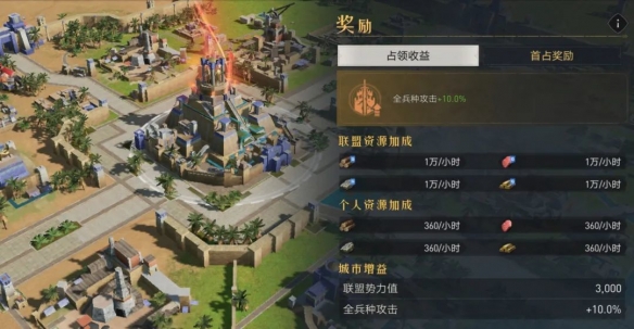 驱敌圣像:君临洲内全兵种守城攻击提升10%。