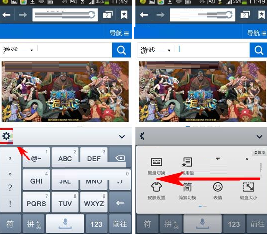 1、调出手机QQ输入法,点击左侧的【齿轮标志】,然后用手指在菜单中自右向左滑动;(如下图)