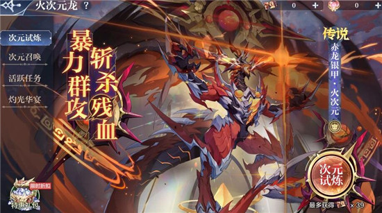 活动内容:暴力群攻,斩杀残血。最新精灵赤龙银甲·火次元登场。通过完成