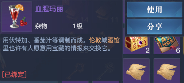 (如果只是在背包中点击使用血腥玛丽,其实是没有效果的,需要与酒馆内的NPC肯维进行对话才能触发任务。)